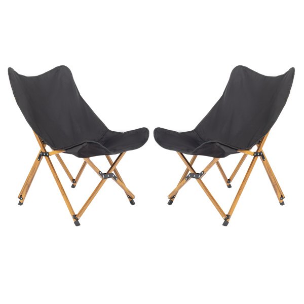 Home > 2pcs Folding Outdoor Camping Chair, Portable Stool for Fishing Picnic BBQ, Ultra Light Aluminum Frame with Wood Grain Accent, Black