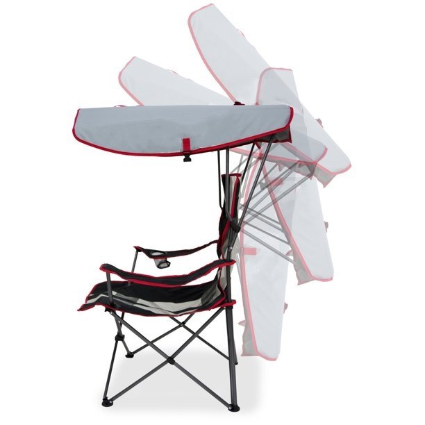 Protect yourself from the elements with the Premium Canopy Chair. This portable folding chair converts from a familiar quad-style camp chair into your own personal oasis. The patented extended sun canopy protects you from the elements with 50+ UPF and locks up or down for shade or sun. Super convenient; the Premium Canopy Chair doesn't need a bag - when folded; the canopy becomes the carry case secured by a durable snap-lock buckle and the attached shoulder strap provides hands-free portability. Additional premium features make it the leader of the pack; such as an oversized seat with rounded front for more ergonomic comfort; large cup holder with O-ring for stability and a sturdy powder coated steel frame which supports up to 250 lbs. The Original Canopy Chair is the perfect companion for your camping trip; tailgating; or even watching sporting events from the sidelines.